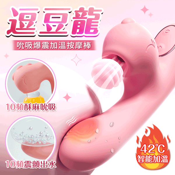 謎姬|逗豆龍 吸吮震動加溫按摩棒|蜜桃粉