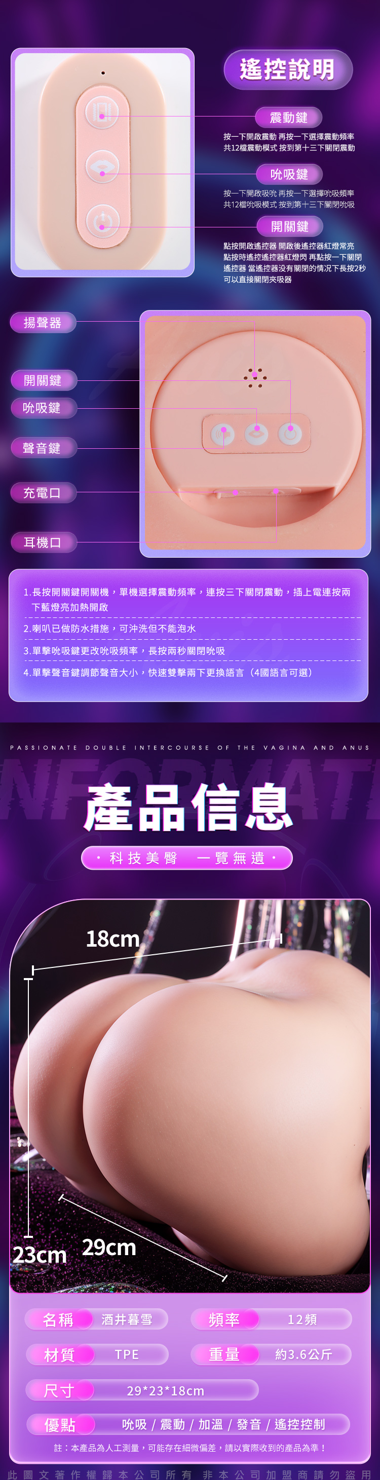 酒井暮雪|12段變頻|震動吮吸加溫 遙控雙穴美臀